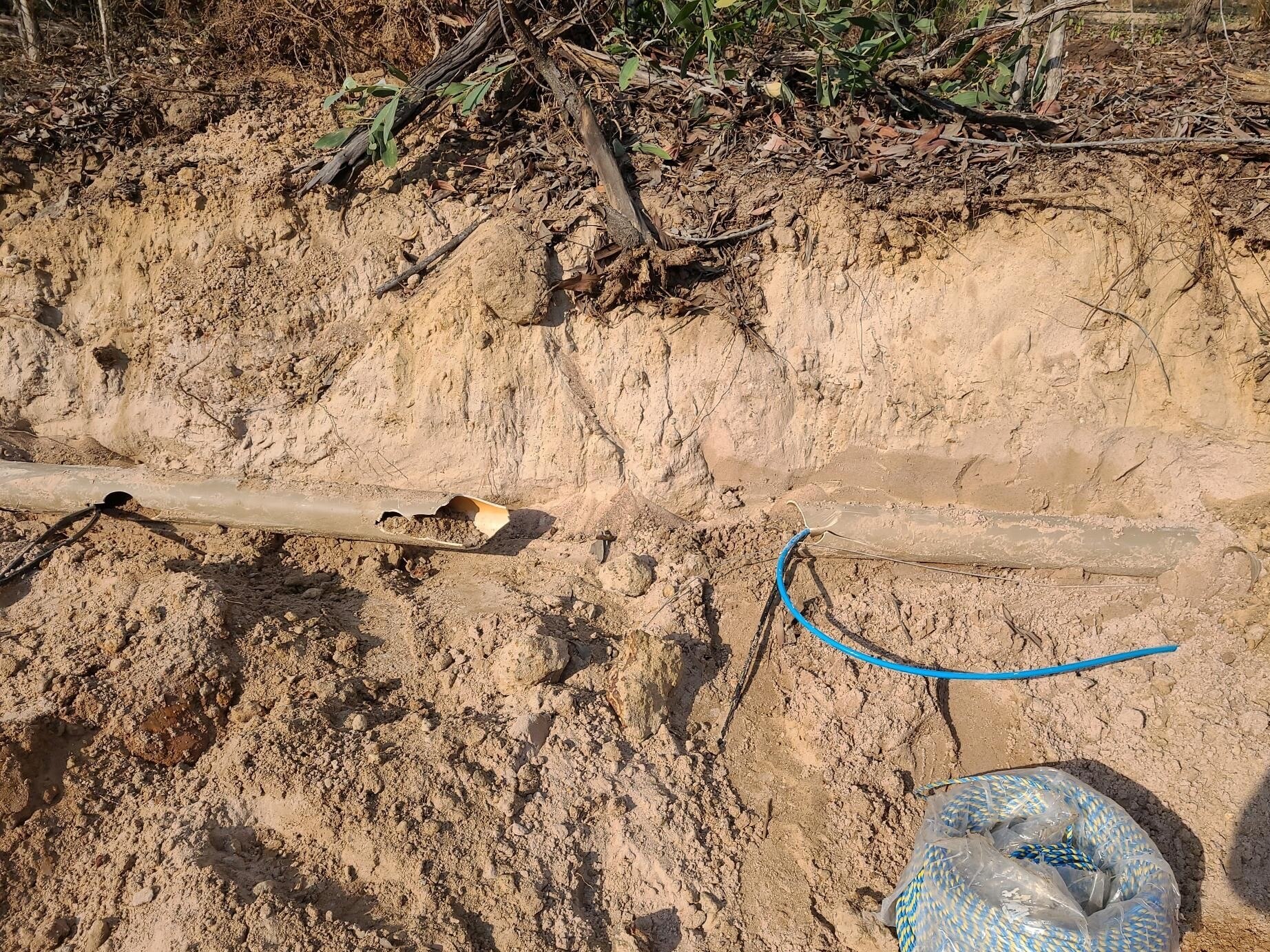 )Large scale outageThe delicate fibre optic cable was buried about half a metre underground.